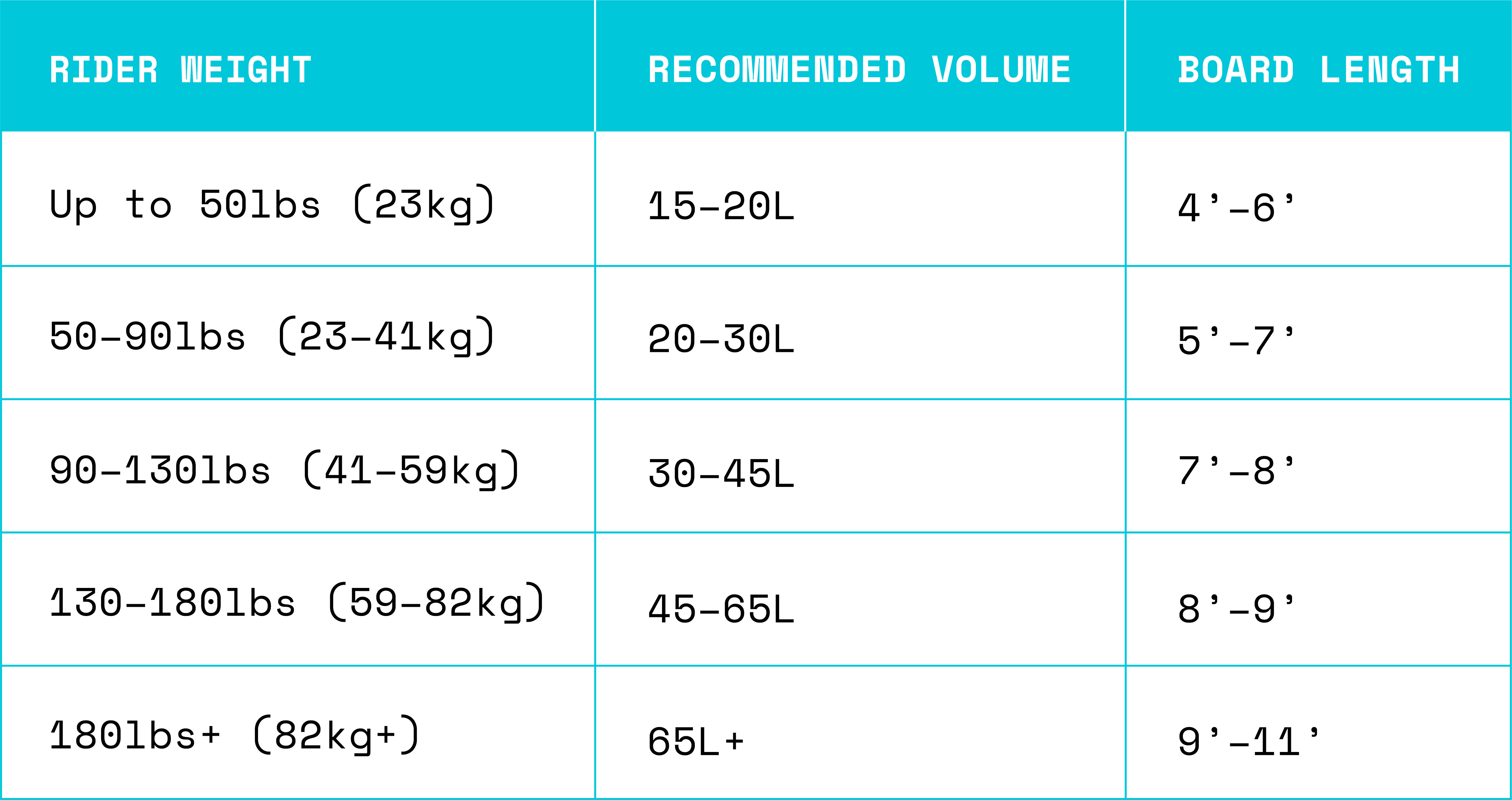 Choose a board with enough volume (liters) for the rider’s weight — more volume means easier paddling, better balance, and more waves.